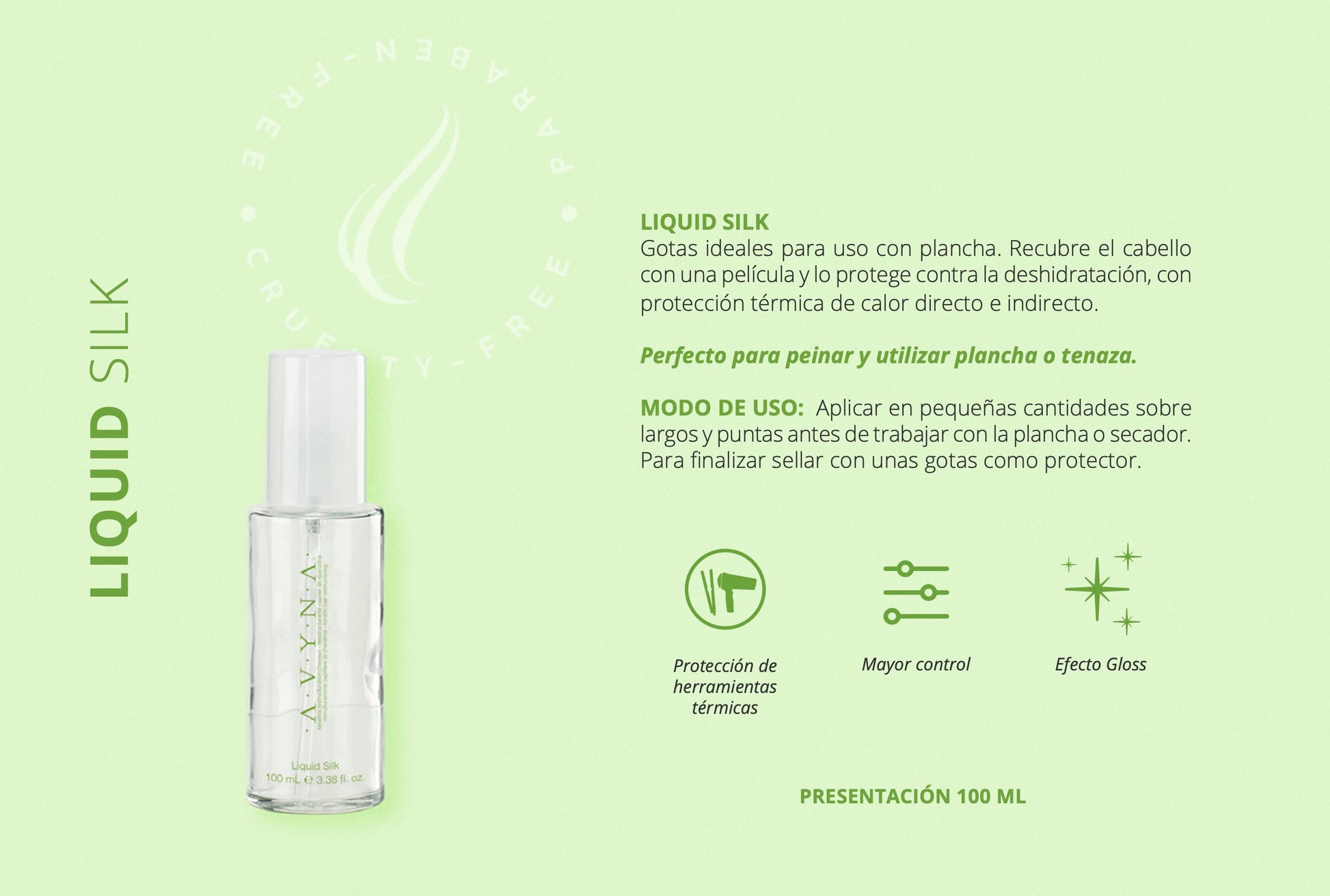 Aplicar en pequeñas cantidades sobre medios a puntas antes de usar la plancha o la secadora. Para terminar sellar con unas gotas como película protectora.